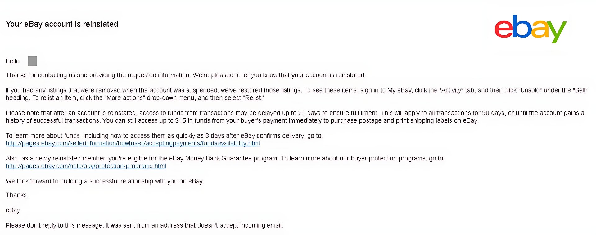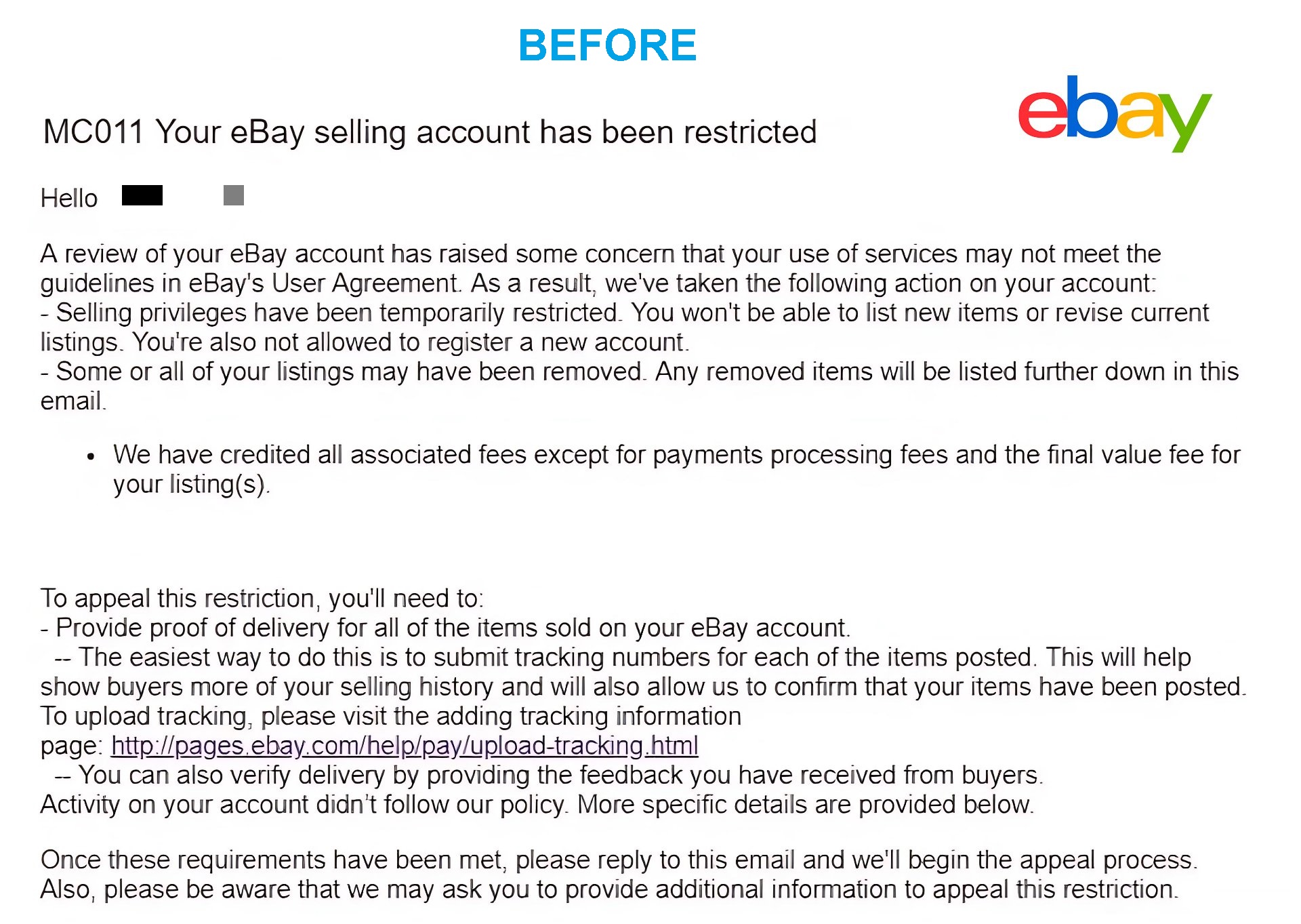 Ebay Account MC011 Reinstatement